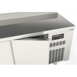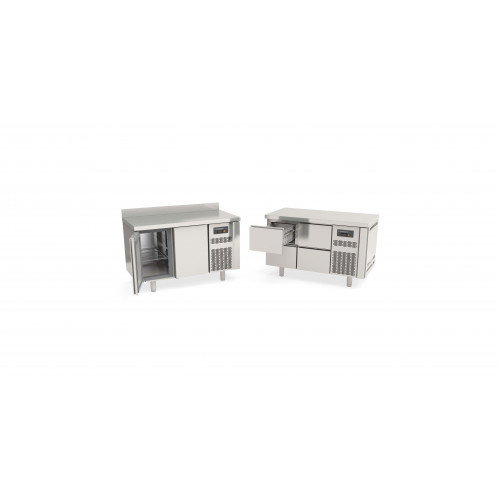 Meuble 700 positif - Série GASTRO S-Line - Température -2°/+8°C - 2 portes pleines - Capacité 255L - Extérieur et intérieur en Inox AISI-304 (sauf partie arrière en galva) - Dosseret de 100mm - Thermostat électronique avec afficheur digital, spécial économie d'énergie - Evaporateur ventilé traité anti-corrosion - Groupe extractible sur glissière avec compresseur tropicalisée - Alarme haute et basse température - Evaporation automatique des eaux de dégivrage - Porte réversible - Joint déclipsable - Pieds inox réglables de 125 à 200 mm - Livré avec 1 clayette rilsan GN1/1 et 1 jeu de glissière inox par porte réglable en hauteur - Conditions de travail : TGR 40°C ambiant, TGC 32°C ambiant