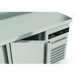 Meuble 700 positif - Série GASTRO S-Line - Température -20°/-15°C - 3 portes pleines - Capacité 450L - Extérieur et intérieur en inox AISI-304 (sauf partie arrière en galva) - Dosseret de 100mm - Thermostat électronique avec afficheur digital, spécial économie d'énergie - Evaporateur ventilé traité anti-corrosion - Groupe extractible sur glissière avec compresseur tropicalisée - Alarme haute et basse température - Evaporation automatique des eaux de dégivrage - Porte réversible - Joint déclipsable - Pieds inox réglables de 125 à 200 mm - Livré avec 1 clayette rilsan GN1/1 et 1 jeu de glissière inox par porte réglable en hauteur - Conditions de travail : TGR 40°C ambiant, TGC 32°C ambiant
