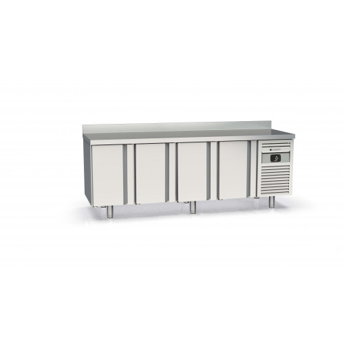 Meuble 700 positif - Série GASTRO - Température -2°/+8°C - 4 portes pleines avec évier de 340 x 360 x 160 SANS ROBINET NI SIPHON NI PRE-PERCAGE - Capacité 635L - Extérieur et intérieur en inox AISI-304 18/10 (sauf partie arrière en galva) - Dosseret de 100mm (sans dosseret sur demande) - Thermostat électronique avec afficheur digital, spécial économie d'énergie - Evaporateur ventilé traité anti-corrosion - Groupe extractible sur glissière - Alarme haute et basse température - Evaporation automatique des eaux de dégivrage - Porte emboutie et réversible - Charnières inox - Joint déclipsable - Pieds inox réglables (hauteur meuble possible 900) - Livré avec 1 clayette inox GN1/1 par porte + 1 jeu de glissières par porte - Ambiance 40°C