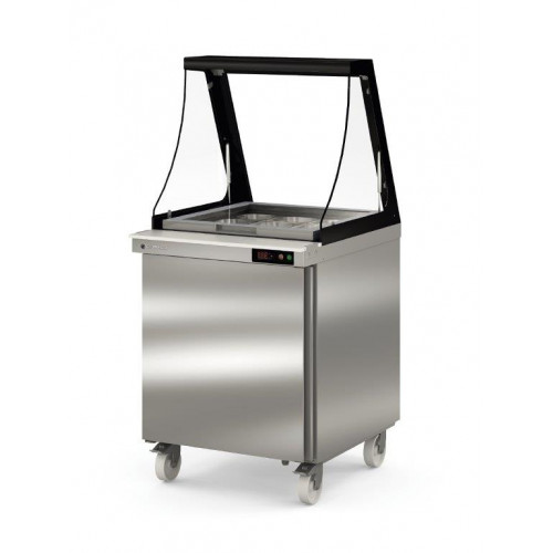 Meuble saladette - Série Haut rendement - Température 0°/+8°C - 1 porte pleine - Capacité 9 bacs GN1/6 prof. 40 - Extérieur et intérieur en inox (sauf partie arrière) - Dessus en inox 18/10 et table en polyéthylène blanc - Couvercle inox rabattable sur les bacs - Thermostat électronique avec afficheur digital, spécial économie d'énergie - Alarme haute et basse température sur contrôleur digital - Compresseur hermétique ventilé sur glissières - Evaporateur ventilé traité anti-corrosion - Evaporation automatique des eaux de dégivrage - Porte emboutie et réversible - Charnières inox - Joint déclispable - Roues de série (2 avec freins - 2 sans freins) - Livré avec 2 clayettes rilsan par porte réglables en hauteur - Ambiance 32°C