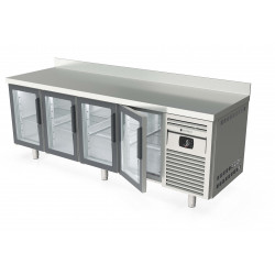 Meuble 700 négatif - Série GASTRO - Température -2°/+8°C - 4 portes vitrées (double vitrage + éclairage LED)- Capacité 635L - Extérieur et intérieur en inox AISI-304 18/10 (sauf partie arrière en galva) - Dosseret de 100mm (sans dosseret sur demande) - Thermostat électronique avec afficheur digital, spécial économie d'énergie - Evaporateur ventilé traité anti-corrosion - Groupe extractible sur glissière - Alarme haute et basse température - Evaporation automatique des eaux de dégivrage - Porte emboutie et réversible - Charnières inox - Joint déclipsable - Pieds inox réglables (hauteur meuble possible 900) - Livré avec 1 clayette inox GN1/1 par porte + 1 jeu de glissières par porte - Ambiance 32°C