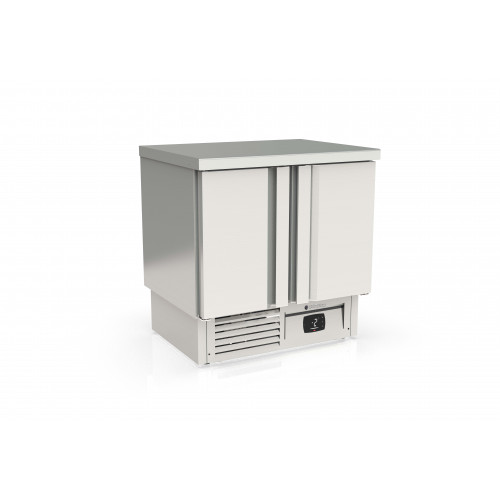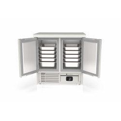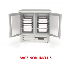 Meuble 700 positif - Série GASTRO compact - Température -2°/+8°C - 2 portes pleines - Capacité 265L - Extérieur et intérieur en inox AISI-304 18/10 (sauf partie arrière en galva) - Sans dosseret (dosseret sur demande) - Thermostat électronique avec afficheur digital, spécial économie d'énergie - Compresseur hermétique ventilé sur glissières - Evaporateur ventilé traité anti-corrosion - Evaporation automatique des eaux de dégivrage - Porte emboutie et réversible - Charnières inox - Tampons - Livré avec 1 clayette inox GN1/1 par porte + 1 jeu de glissières par porte - Ambiance 40°C - Alarme haute et basse température sur contrôleur digital