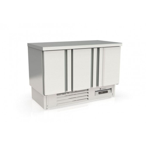 Meuble 700 positif - Série GASTRO compact - Température -2°/+8°C - 3 portes pleines - Capacité 450L - Extérieur et intérieur en inox AISI-304 18/10 (sauf partie arrière en galva) - Sans dosseret (dosseret sur demande) - Thermostat électronique avec afficheur digital, spécial économie d'énergie - Compresseur hermétique ventilé sur glissières - Evaporateur ventilé traité anti-corrosion - Evaporation automatique des eaux de dégivrage - Porte emboutie et réversible - Charnières inox - Tampons - Livré avec 1 clayette inox GN1/1 par porte + 1 jeu de glissières par porte - Ambiance 40°C - Alarme haute et basse température sur contrôleur digital