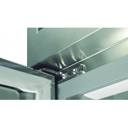 Armoire GN2/1 emboutie - Température positive (-2°/+8°C) - Capacité 1404l - 2 portes pleines embouties - Extérieur et intérieur en inox AISI-304 (sauf partie arrière) - Côtés emboutis et crémaillères centrales isolation épaisseur 85mm - Evaporateur double circuit ventilé traité anti-corrosion et compresseur hermétique ventilé - Thermostat électronique avec affichage digital - Evaporation automatique des eaux de dégivrage - Panneau de commande relevable pour faciliter l'accès au groupe - Arrêt de la ventilation à l'ouverture de la porte - Eclairage intérieur LED - Serrure en standard - Dégivrage rapide - Détection des prises en glace de l'évaporateur - Pieds inox réglables de 135 à 200mm - Ambiance 43°C - Gaz R290 - Dotation : 3 clayettes GN2/1 inox par porte