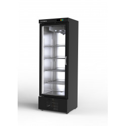 Armoire Gourmet - Température positive (-2°/+8°C) - Capacité 505L - 1 porte vitrée - Extérieur Noir et intérieur en inox AISI-304 (sauf partie arrière) - Evaporateur traité anti-corrosion - Thermostat électronique avec afficheur digital, spécial économie d'énergie - Dégivrage et évaporation par résistance - Eclairage intérieur LEDs - Pieds inox réglables de 125 à 200 mm - Ambiance 43°C - Alarme haute et basse température sur contrôleur digital - Dotation : 4 clayettes plastifiées, réglables en hauteur sur glissières inox (4 paires par porte)