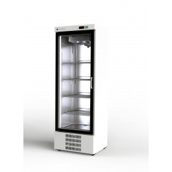 Armoire Gourmet - Température positive (-2°/+8°C) - Capacité 505L - 1 porte vitrée - Extérieur Blanc et intérieur en inox AISI-304 (sauf partie arrière) - Evaporateur traité anti-corrosion - Thermostat électronique avec afficheur digital, spécial économie d'énergie - Dégivrage et évaporation par résistance - Eclairage intérieur LEDs - Pieds inox réglables de 125 à 200 mm - Ambiance 43°C - Alarme haute et basse température sur contrôleur digital - Dotation : 4 clayettes plastifiées, réglables en hauteur sur glissières inox (4 paires par porte)
