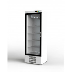 Armoire Gourmet - Température positive (-2°/+8°C) - Capacité 505L - 1 porte vitrée - Extérieur Blanc et intérieur Blanc - Evaporateur traité anti-corrosion - Thermostat électronique avec afficheur digital, spécial économie d'énergie - Dégivrage et évaporation par résistance - Eclairage intérieur LEDs - Pieds inox réglables de 125 à 200 mm - Ambiance 43°C - Alarme haute et basse température sur contrôleur digital - Dotation : 4 clayettes plastifiées, réglables en hauteur sur glissières inox (4 paires par porte)