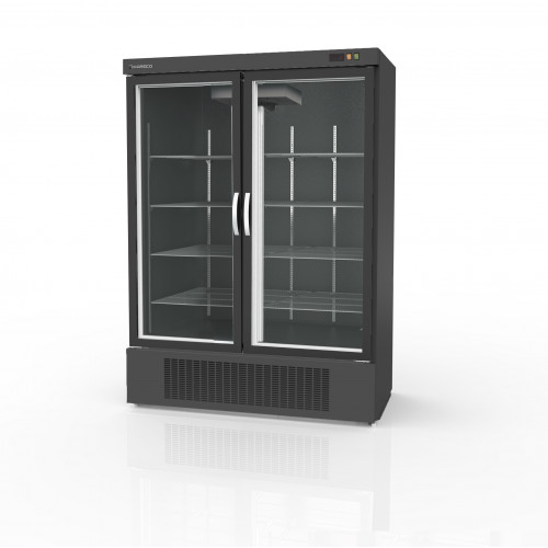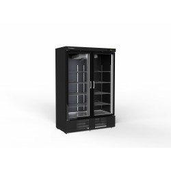 Armoire Gourmet - Température positive (-2°/+8°C) - Capacité 1201L - 2 portes vitrées - Extérieur Noir et intérieur noir - Evaporateur traité anti-corrosion - Thermostat électronique avec afficheur digital, spécial économie d'énergie - Dégivrage et évaporation par résistance - Eclairage intérieur LEDs - Pieds inox réglables de 125 à 200 mm - Ambiance 43°C - Alarme haute et basse température sur contrôleur digital - Dotation : 4 clayettes plastifiées par porte, réglables en hauteur sur glissières inox (4 paires par porte)