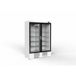 Armoire Gourmet - Température positive (-2°/+8°C) - Capacité 1201L - 2 portes vitrées - Extérieur Blanc et intérieur Blanc - Evaporateur traité anti-corrosion - Thermostat électronique avec afficheur digital, spécial économie d'énergie - Dégivrage et évaporation par résistance - Eclairage intérieur LEDs - Pieds inox réglables de 125 à 200 mm - Ambiance 43°C - Alarme haute et basse température sur contrôleur digital - Dotation : 4 clayettes plastifiées par porte, réglables en hauteur sur glissières inox (4 paires par porte)