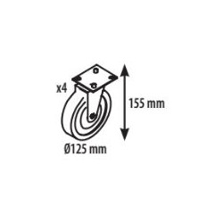 Kit 3 roues avec freins + 3 roues sans freins pour meuble ou armoire Coreco - Diamètre 125 mm - H = 155mm