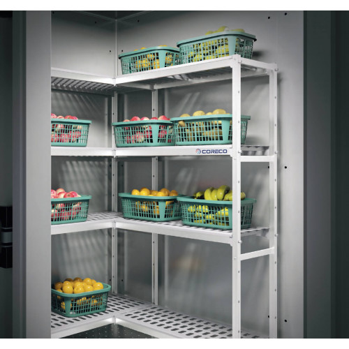 Rayonnage bas 1390x250x400 - Spécialement conçu pour usage alimentaire - Structure aluminium anodisée - Clayettes en polyéthylène qualité alimentaire - Vis en acier inoxydable - Compatible à une utilisation en chambres froides, à la fois pour des températures positives comme négatives - Assemblage facile et sans outil