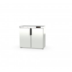 Arrière bar - Température +2°/+8°C - 2 portes pleines battantes - Stockage : 225 bouteilles (33cl) - Capacité : 200l - Extérieur inox - Intérieur en acier plastifié gris - Eclairage intérieur LED - Serrure en standard - Thermostat électronique avec afficheur digital, spécial économie d'énergie, protégé des projections - Evaporation automatique des eaux de dégivrage - Livré sur tampons réglables - Livré avec 2 clayettes rilsan réglables en hauteur - Compresseur : 1/5cv - Alarme haute et basse température sur contrôleur digital