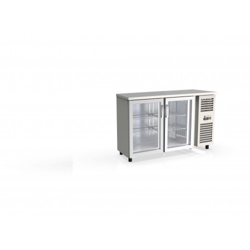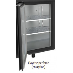 Arrière bar - Température +2°/+8°C - 2 portes vitrées battantes (double vitrage) - Stockage : 320 bouteilles (33cl) - Capacité : 325l - Extérieur en inox - Intérieur en acier plastifié gris - Eclairage intérieur LED - Serrure en standard - Thermostat électronique avec afficheur digital, spécial économie d'énergie, protégé des projections - Compresseur hermétique ventilé - Evaporateur et condenseur ventilés - Evaporation automatique des eaux de dégivrage - Alarme haute et basse température sur contrôleur digital - Pieds réglables pour obtenir une hauteur de 880 mm (inclus) - Livré avec 2 clayettes rilsan réglables en hauteur