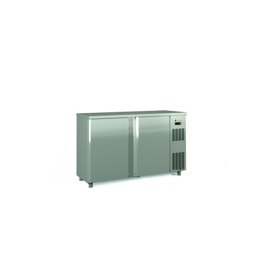Arrière bar - Température +2°/+8°C - 2 portes pleines battantes - Stockage : 320 bouteilles (33cl) - Capacité : 325l - Extérieur en acier galvanisé plastifié noir - Intérieur en acier plastifié gris - Eclairage intérieur LED - Serrure en standard - Thermostat électronique avec afficheur digital, spécial économie d'énergie, protégé des projections - Compresseur hermétique ventilé - Evaporateur et condenseur ventilés - Evaporation automatique des eaux de dégivrage - Alarme haute et basse température sur contrôleur digital - Pieds réglables pour obtenir une hauteur de 880 mm (inclus) - Livré avec 2 clayettes rilsan réglables en hauteur