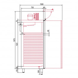 Armoire pâtissière - Température positive (-2°/+8°C) - Capacité 645l - 1 porte pleine - Extérieur en inox AISI-304 18/10 (sauf partie arrière) - Intérieur en inox AISI-304 - Evaporateur anti-corrosion et compresseur hermétique ventilé - Thermostat électronique avec affichage digital - Dégivrage et évaporation par résistances - Eclairage intérieur LED - Serrure en standard - Pieds inox réglables de 125 à 200mm - Ambiance 43°C - Dotation : 20 jeux de glissières