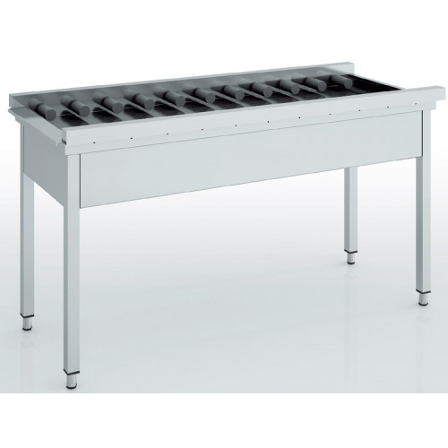 Table d'entrée/sortie à rouleaux - Forme droite - Inox AISI-304 18/10 satiné - Rouleaux démontables en PVP avec axe inox - Fixation universelle - Pieds en tube de 40x40 réglable en hauteur