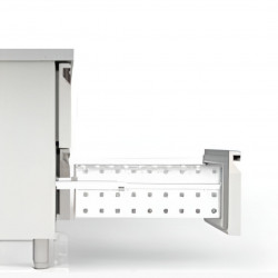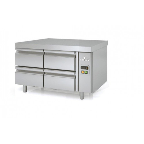Meuble 700 - Série SOUBASSEMENT groupe à distance GN1/1 Hauteur 600 - Température -2°/+8°C -2x2 tiroirs- Capacité 170L - Extérieur et intérieur en inox AISI-304 18/10 (sauf partie arrière en galva) - Livré sans groupe, sans capillaire ni détendeur - Bandeaux de commande démontables - Tiroirs double GN1/1 profondeur 100mm réfrigérés + évaporateur entre les portes - Thermostat électronique avec afficheur digital, spécial économie d'énergie - Compresseur hermétique ventilé sur glissières - Evaporateur ventilé traité anti-corrosion - Porte emboutie et réversible - Charnières inox - Pieds inox réglables en hauteur de 90 à 125mm - Livré avec 1 clayette inox GN 1/1 par porte + 1 jeu de glissières par porte - Ambiance 40°C - Alarme haute et basse température sur contrôleur digital