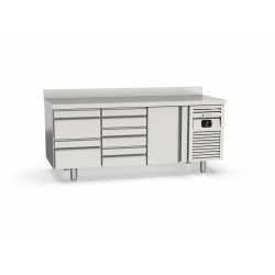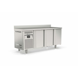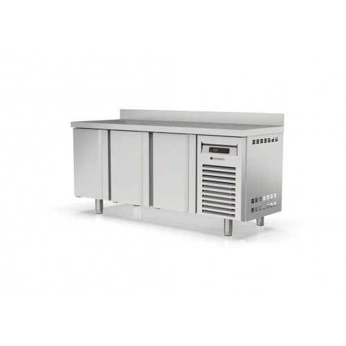 Meuble 600 négatif - Série SNACK - Température -15°/-20°C - 3 portes pleines - Capacité 410L - Extérieur et intérieur en inox AISI-304 18/10 (sauf partie arrière en galva) - Dosseret de 100mm (sans dosseret sur demande) - Thermostat électronique avec afficheur digital, spécial économie d'énergie - Evaporation automatique des eaux de dégivrage - Dégivrage par résistances - Porte emboutie inox et réversible - Charnières inox - Joint déclipsable - Evaporateur ventilé anti-corrosion et condenseur ventilé et extractible - Pieds inox réglables (hauteur meuble possible 900) - Livré avec 1 clayette rilsan par porte réglable en hauteur sur support inox - Compresseur : 3/8cv - Ambiance 32°C - Alarme haute et basse température sur contrôleur digital