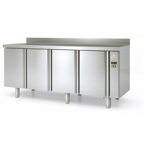Meuble 700 négatif - Série GASTRO groupe à distance - Température -15°C/-20°C - 4 portes pleines - Capacité 635L - Extérieur et intérieur en inox AISI-304 18/10 (sauf partie arrière en galva) - Dosseret de 100mm (sans dosseret sur demande) - Livré sans groupe, sans capillaire ni détendeur - Bandeau de commande latéral et frontal démontable - Thermostat électronique avec afficheur digital, spécial économie d'énergie - Pas d'évaporation des eaux de condensat - Porte inox emboutie et réversible - Charnières inox - Joint déclipsable - Pieds inox réglables (hauteur meuble possible 900) - Livré avec 1 clayette inox GN1/1 + 1 jeu de glissières par porte - Ambiance 40°C - Alarme haute et basse température sur contrôleur digital