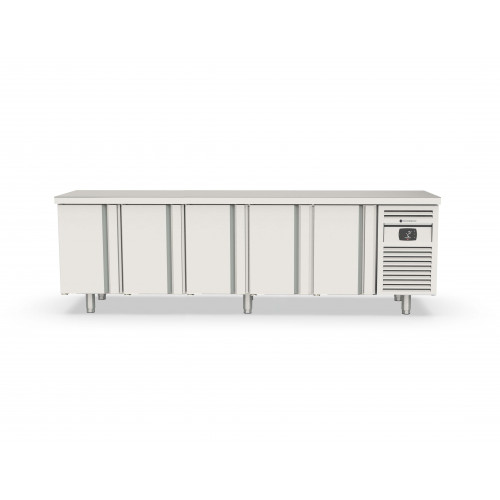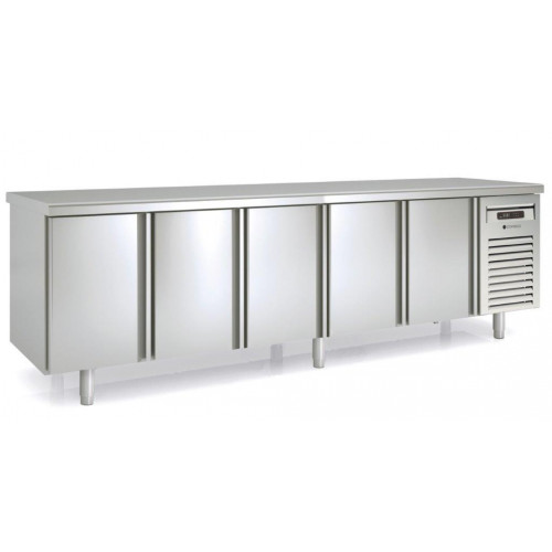 Meuble 700 positif - Série GASTRO traversant - Température -2°/+8°C - 5 + 5 portes pleines = 10 portes - Capacité 820L - Extérieur et intérieur en inox AISI-304 18/10 (sauf partie arrière en galva) - Thermostat électronique avec afficheur digital, spécial économie d'énergie - Compresseur hermétique ventilé sur glissières - Evaporateur ventilé traité anti-corrosion - Evaporation automatique des eaux de dégivrage - Porte emboutie et réversible - Charnières inox - Joint déclipsable - Pieds inox réglables (hauteur meuble possible 900) - Livré avec 1 clayette inox GN1/1 par porte + 1 jeu de glissières par porte - Ambiance 40°C - Alarme haute et basse température sur contrôleur digital