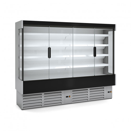 Vitrine murale gamme CEDAR DG (avec portes) Profondeur 0 (653mm) - Portes battantes - Côtés standards en ABS - Extérieur laqué - Etagères réglables en hauteur et inclinables, avec le porte-prix de 40mm inclus - Evaporateur ventilé avec traitement époxy anti-corrosion - Dégivrage automatique de l'évaporateur - Bac d'évaporation automatique - Eclairage LED - Classe climatique 3 (25°C 60%), régime M1 (-1°/+5°C) - Isolation polyuréthane injecté, densité 40kg/m3 faible GWP et zéro effet ODP