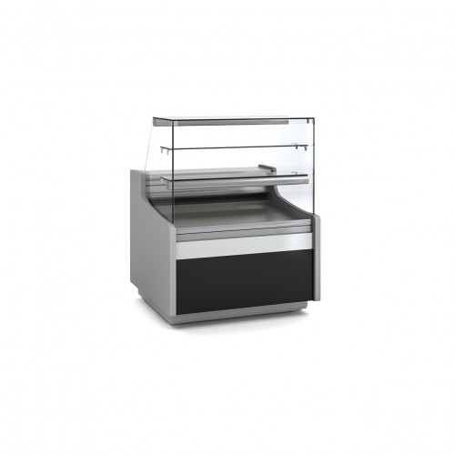 Vitrine droite - Profondeur 960 - 2 étagères - Extérieur et intérieur acier plastifié - Plan de travail et surface d'expo inox AISI-304 - Cotés ABS thermoformé épaisseur 30 - Isolation en polyuréthane - Vitre droite double sécurit rabattable - Thermostat électronique réglable avec affichage digital - Dégivrage automatique - Evaporation automatique des eaux de dégivrage - Stockage réfrigéré avec portes, entrée 440x270mm - Lumière LED intérieure LED en partie haute et sous étagère - Profilés en aluminium anodisé - Protection frontale anti-choc - Froid ventilé - Classe climatique 3 (25°C 60%), température de fonctionnement (0/+6°C)