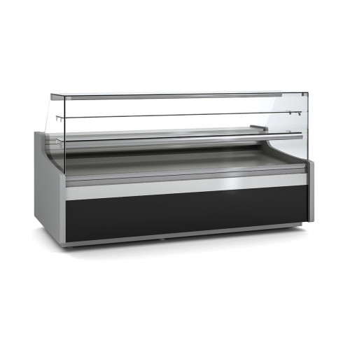 Vitrine droite - Profondeur 960 - 2 étagères - Extérieur et intérieur acier plastifié - Plan de travail et surface d'expo inox AISI-304 - Cotés ABS thermoformé épaisseur 30 - Isolation en polyuréthane - Vitre droite double sécurit rabattable - Thermostat électronique réglable avec affichage digital - Dégivrage automatique - Evaporation automatique des eaux de dégivrage - Stockage réfrigéré avec portes, entrée 440x270mm - Lumière LED intérieure LED en partie haute et sous étagère - Profilés en aluminium anodisé - Protection frontale anti-choc - Froid ventilé - Classe climatique 3 (25°C 60%), température de fonctionnement (0/+6°C) - Volume réserve (m3) : 0,84 - Surface vitrée (m2) : 1,65 - 4 portes