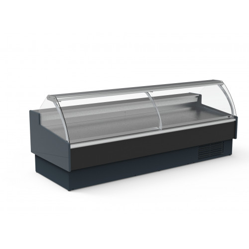 Vitrine avec vitre relevable - Profondeur 1200 - Extérieur et intérieur acier plastifié - Plan de travail et surface d'expo inox AISI-304 - Cotés ABS thermoformé épaisseur 30 - Profilés en aluminium anodisé - Isolation en polyuréthane - Vitre bombée sécurit - Thermostat électronique réglable avec affichage digital - Evaporation automatique des eaux de dégivrage - Stockage réfrigéré avec portes, entrée 440x270mm - Lumière LED intérieure en partie haute - Protection frontale anti-choc - Froid ventilé - Classe climatique 3 (25°C 60%), température de fonctionnement (0/+6°C)