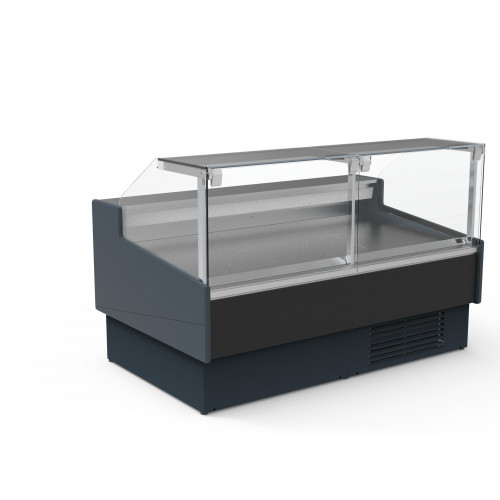 Vitrine avec vitre relevable - Profondeur 1200 - Extérieur et intérieur acier plastifié - Plan de travail et surface d'expo inox AISI-304 - Cotés ABS thermoformé épaisseur 30 - Profilés en aluminium anodisé - Isolation en polyuréthane - Vitre droite double sécurit - Thermostat électronique réglable avec affichage digital - Evaporation automatique des eaux de dégivrage - Stockage réfrigéré avec portes, entrée 440x270mm - Lumière LED intérieure en partie haute - Protection frontale anti-choc - Froid ventilé - Classe climatique 3 (25°C 60%), température de fonctionnement (0/+6°C)
