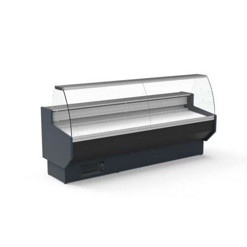 Vitrine service arrière sans étagère - Profondeur 1100 - Gamme non canalisable - Extérieur et intérieur en tôle d'acier pré-peinte - Plan de travail en inox AISI-304 - Plan d'expo et protection de l'évaporateur en tôle, finition époxy - Profilés en aluminium anodisé - Isolation en polyuréthane - Côtés en ABS thermoformé (ép. 30mm) - Vitre bombée sécurit rabattable - Stockage réfrigéré avec portes, entrée 440x270mm - Thermostat électronique réglable avec affichage digital - Dégivrage automatique - Lumière LED intérieure en partie haute - Froid ventilé - Condenseur ventilé - Classe climatique 3 (25°C 60%), température de fonctionnement (0/+6°C)