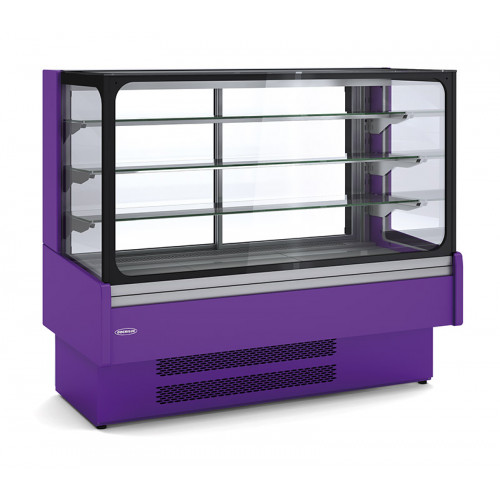 Vitrine service arrière 3 étagères - Extérieur en acier plastifié - Intérieur en inox AISI-304 18/10 - Fond plat - Cotés ABS thermoformé - Isolation en polyuréthane - Profils en aluminium anodisé - 3 étagères fixe en verre - 2 portes arrières coulissantes - Vitre droite en double vitrage sécurit rabattable - Lumière LED en partie haute et sous chaque étagère - Froid ventilé - Condenseur ventilé - Evaporateur ventilé - Dégivrage automatique avec évaporation automatique - Thermostat électronique à affichage digital - Décoration façade et côtés en standard - Classe climatique 3 (25°C 60%)