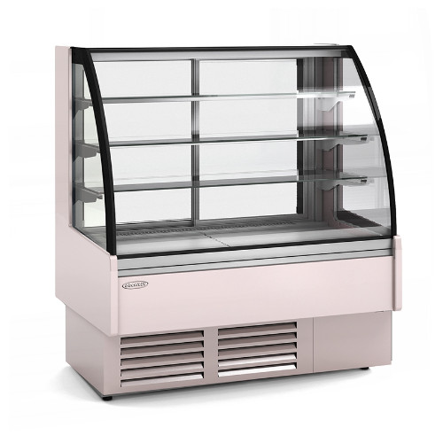 Vitrine service arrière 3 étagères - Extérieur en acier plastifié - Intérieur en inox AISI-304 18/10 - Fond plat - Cotés ABS thermoformé - Isolation en polyuréthane - Profils en aluminium anodisé - 3 étagères fixe en verre - 2 portes arrières coulissantes - Vitre bombée en double vitrage sécurit rabattable - Lumière LED en partie haute et sous chaque étagère - Froid ventilé - Condenseur ventilé - Evaporateur ventilé - Dégivrage automatique avec évaporation automatique - Thermostat électronique à affichage digital - Décoration façade et côtés en standard - Classe climatique 3 (25°C 60%)