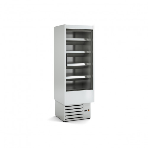 Vitrine murale gamme CEDAR DG (avec portes) Profondeur 1 (797mm) - Portes battantes - Côtés pleins effet miroir - Extérieur inox - Etagères réglables en hauteur et inclinables, avec le porte-prix de 40mm inclus - Evaporateur ventilé avec traitement époxy anti-corrosion - Dégivrage automatique de l'évaporateur - Bac d'évaporation automatique - Eclairage LED - Classe climatique 3 (25°C 60%), régime M1 (-1°/+5°C) - Isolation polyuréthane injecté, densité 40kg/m3 faible GWP et zéro effet ODP