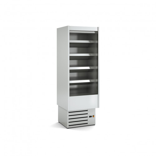 Vitrine murale gamme CEDAR DS sans porte) Profondeur 1 (797mm) - Sans porte - Côtés pleins effet miroir - Extérieur inox - Etagères réglables en hauteur et inclinables, avec le porte-prix de 40mm inclus - Evaporateur ventilé avec traitement époxy anti-corrosion - Dégivrage automatique de l'évaporateur - Bac d'évaporation automatique - Eclairage LED - Classe climatique 3 (25°C 60%), régime M2 (-1°/+7°C) - Isolation polyuréthane injecté, densité 40kg/m3 faible GWP et zéro effet ODP