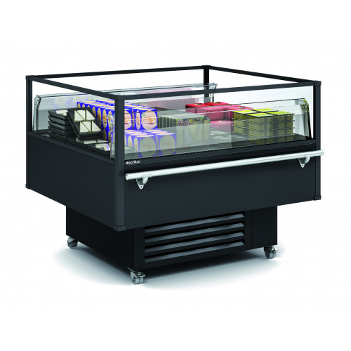 Vitrine/Ilot libre-service – Extérieur en acier plastifié - Intérieur en tôle d'acier finition époxy blanc, noir ou inox – Châssis en acier époxy -Double virage sécurisé – Isolation en polyuréthane injecté, densité 40kgs/m3, aucun effet ODP, GWP – Condensation ventilée – Evaporation automatique des eaux de dégivrage – Contrôle électronique de la température – Température -1°/+5° (classe 3 régime M1) - Gaz R290