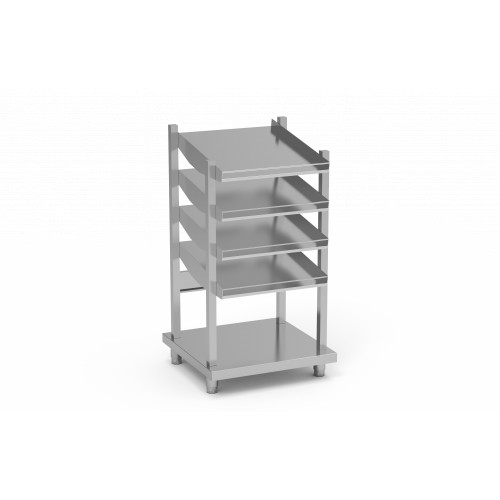 Meuble de distribution - Spécial self pour enfants - Distributeur sur pied pour pain et verres avec étagères - Construction inox AISI 304 18/10 satiné - Tubes rectangulaires de 60x40 mm - Pour plateaux Euronorm 1/2