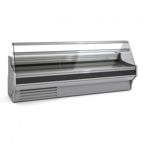 Vitrine service arrière - Profondeur 800 - Extérieur et intérieur acier plastifié - Plan de travail et surface d'expo inox AISI-304 - Cotés ABS thermoformé épaisseur 40 - Profilés en aluminium anodisé - Isolation en polyuréthane - Vitre droite sécurit rabattable - Thermostat électronique réglable avec affichage digital - Dégivrage automatique - Evaporation automatique des eaux de dégivrage - Stockage réfrigéré avec portes, entrée 440x270 mm - Lumière LED intérieure en partie haute et sous étagères - Protection frontale anti-choc - Etagère en verre non réfrigérée - Froid statique - Classe climatique 3 (25°C 60%), température de fonctionnement (0/+6°C) - Volume réserve (m3) : 1,12 - Surface vitrée (m2) : 1,63 - 4 portes