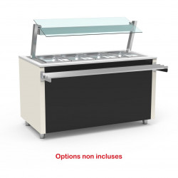 Meubles en acier plastifié avec structure en acier inoxydable AISI-304 18/10 - Cuve froide avec bords sanitaires arrondis et capacité pour bacs GN de profondeur maximale de 200 mm - Cuve froide en acier inoxydable AISI 304 18/10 - Isolation écologique injectée de haute densité et de grande épaisseur - Refroidissement par serpentin en cuivre, unité de condensation avec gaz R-290 et contrôle thermostatique digital - Vidange incorporée - Plan de travail en quartz technique hautement résistant - Tension monophasée 230 v / 50 Hz - Plage de température de la cuve 0ºC / +5ºC