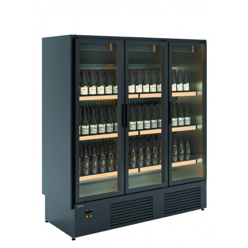 Vitrine EFIMARKET vin positive - (+10° +18°) (+4° +8°) - Vitrine verticale, groupe logé, avec une capacité de produit et une visibilité optimisées - Porte battante sans cadre avec façade entièrement vitrée avec sérigraphie minimale - système de fermeture automatique et joint d’étanchéité magnétique(reste ouvert lors d’une ouverture supérieure à 90º) - Trois possibilités de configuration : Extérieur blanc RAL 9003, noir RAL 9005 - Intérieur standard en époxy RAL 9003 (blanc) - 5 niveaux d'étagères avec façade en bois pin massif - Dégivrage automatique de l’évaporateur - Bacs d’évaporation automatique - Contrôle électronique - Eclairage LED 3000 K