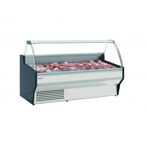 Vitrine avec vitre relevable - Profondeur 1100 - Extérieur et intérieur acier plastifié - Plan de travail et surface d'expo inox AISI-304 - Cotés ABS thermoformé épaisseur 30 - Profilés en aluminium anodisé - Isolation en polyuréthane - Vitre bombée sécurit - Thermostat électronique réglable avec affichage digital - Dégivrage automatique - Evaporation automatique des eaux de dégivrage - Stockage réfrigéré avec portes, entrée 440x270mm - Lumière LED intérieure en partie haute - Protection frontale anti-choc - Froid ventilé - Condenseur ventilé - Classe climatique 3 (25°C 60%), température de fonctionnement (0/+6°C)
