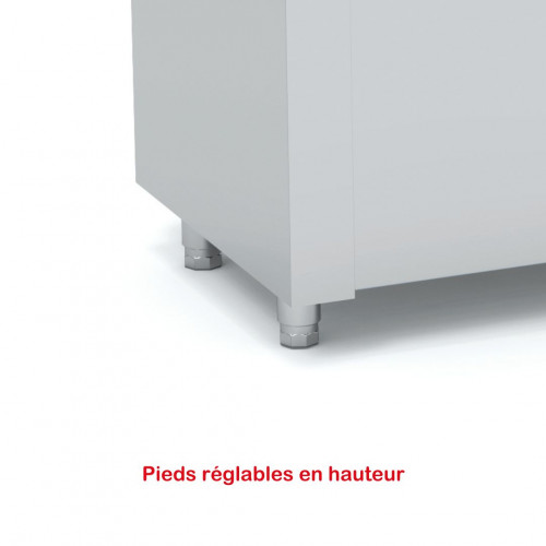 Meuble neutre avec étagère intérieure - Sans porte - Construction inox AISI-304 18/10 satiné - Dessus avec coins arrondis - Pieds réglables en hauteur - Longueur : 800 mm