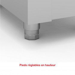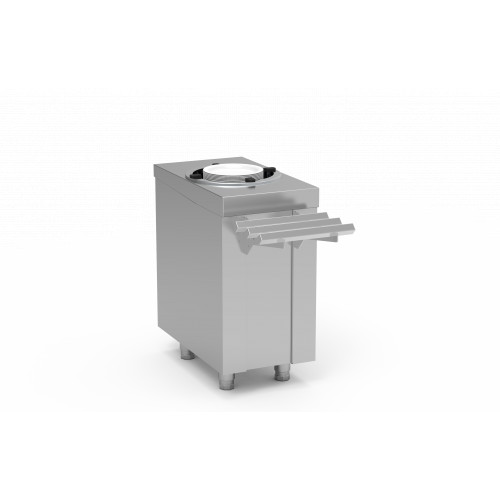 Meuble neutre distributeur assiettes - Construction inox AISI-304 18/10 satiné - Dessus avec coins arrondis - Pieds réglables en hauteur - 1 colonne sur ressorts réglables pour recevoir assiettes diamètre 210 à 278 mm - Capacité : 45 assiettes